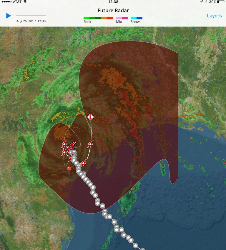 Harvey blew up from a little storm into a Cat 4 in less than 60 hours. I was driving to Austin from Atlanta when I received a text message from Steve Appleton, owner of Altair, next to Frank, warning me of the storm. The Marina also has a great warning system, with texts and calls.